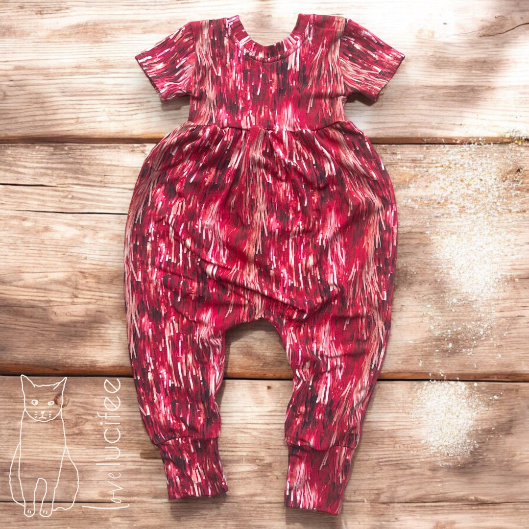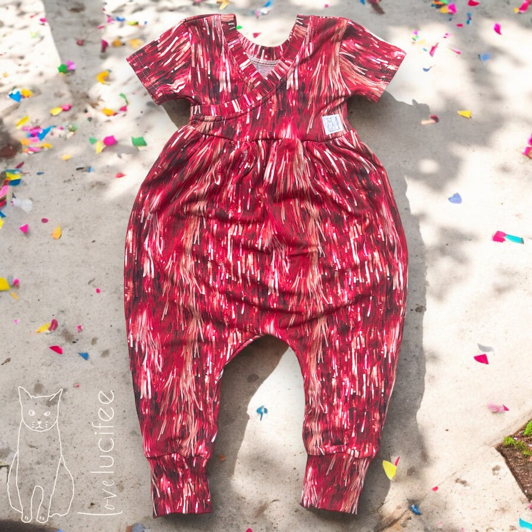 Jade Jumpsuit is made to order pull on short sleeve bubble jumpsuit with a cross back detail.