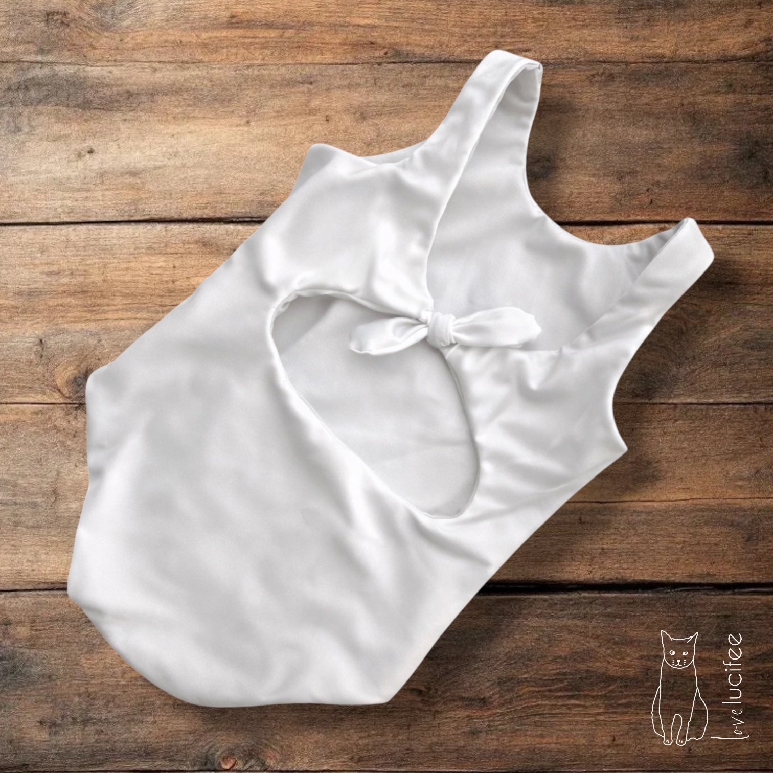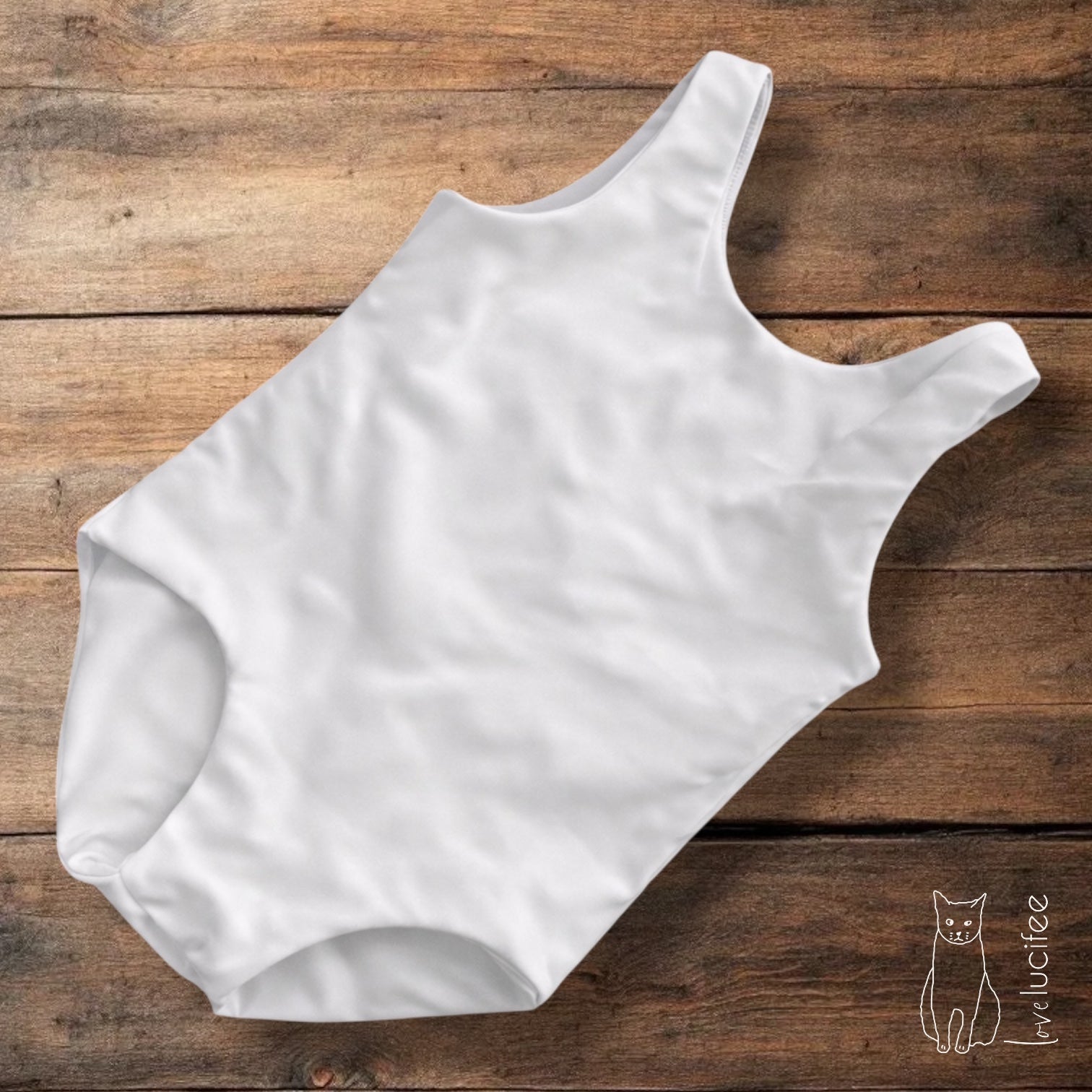 The custom goldess reversible one piece is a made to order one piece swimsuit with tie at back. Since it's reversible, you get two suits in one! Available with added picot lace at neckline, armholes, and leg openings.